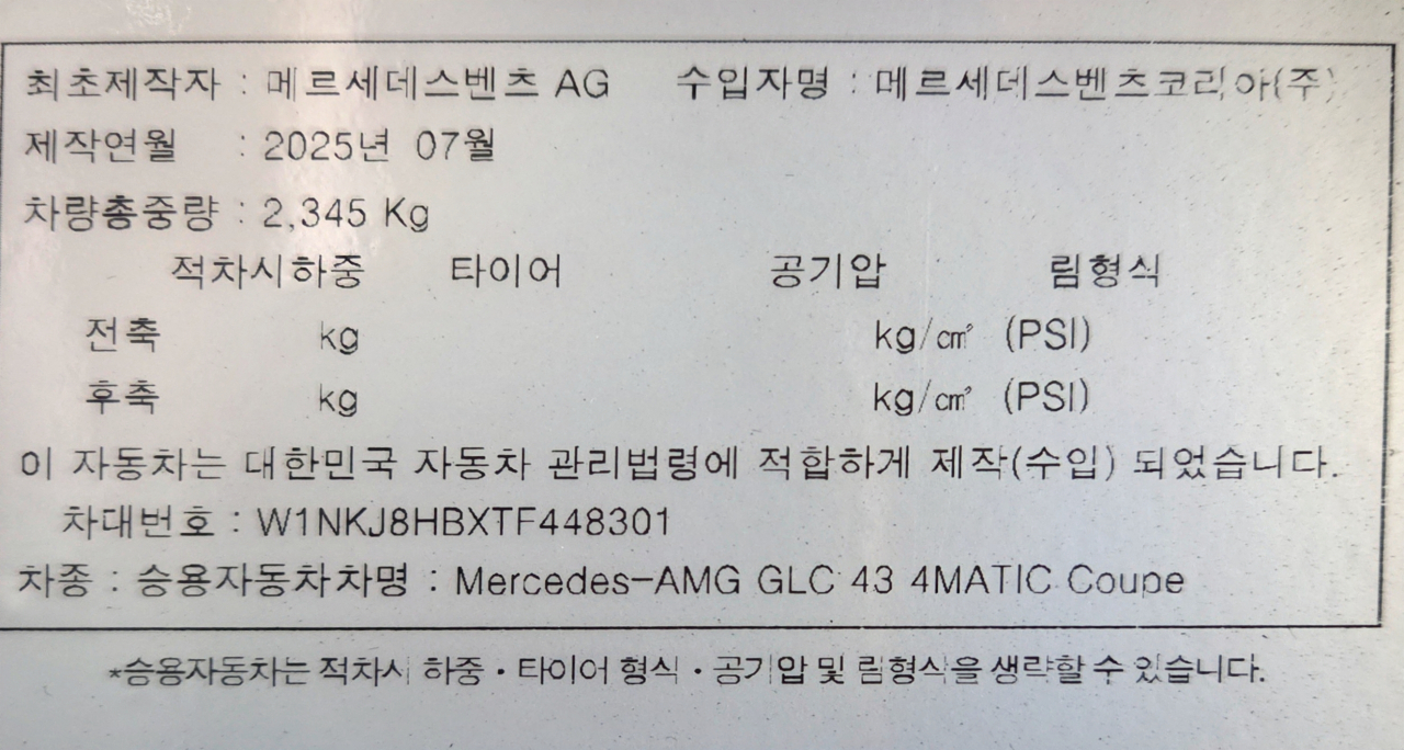 º¥Ã÷ GLCŬ·¡½º GLC 43 AMG 4¸Åƽ ÄíÆä X253